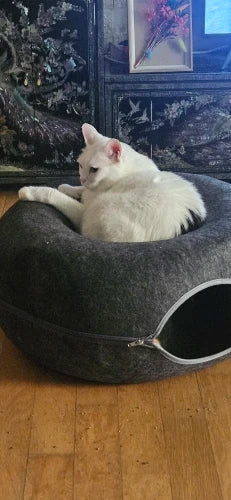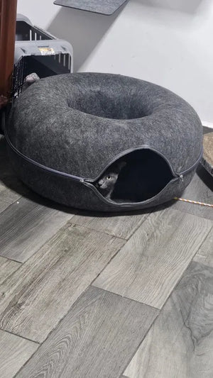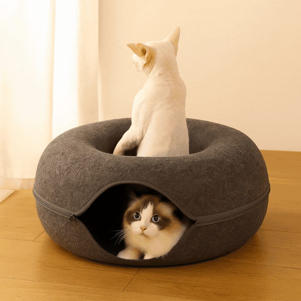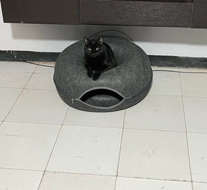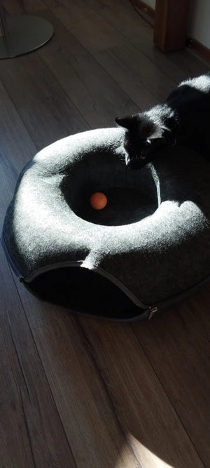 Imagine a space where your cat can play and rest without getting bored. Our donut bed transforms into a playground, keeping your cat active and entertained. It helps prevent restlessness and promotes a happy, stimulated life.