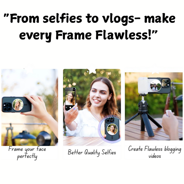 With our magnetic mirror tool, enjoy sharp, well-angled selfies without hassle. Its compact design offers portability and ease of use, transforming your selfie game.